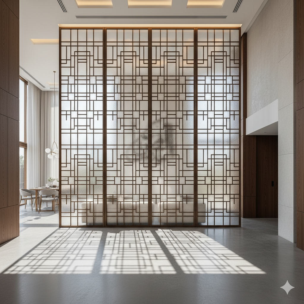 Architectural Room Dividers: Creating visual separation between spaces without sacrificing light flow or the sense of openness that defines modern living. These screens work particularly well in open-plan layouts, delineating dining areas from living spaces or creating private zones within master suites.