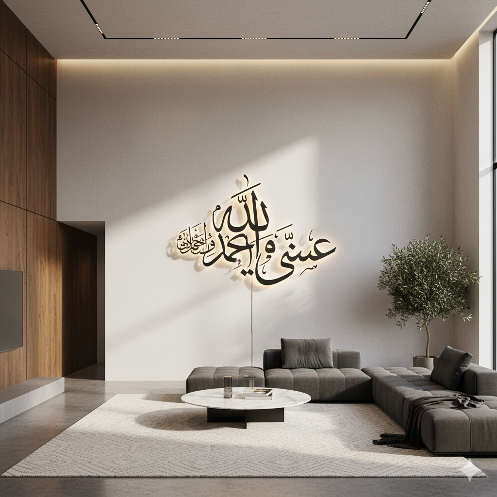 Illuminated Calligraphy: LED integration allows calligraphic designs to be backlit or edge-lit, transforming them into glowing installations that serve both decorative and functional lighting purposes.